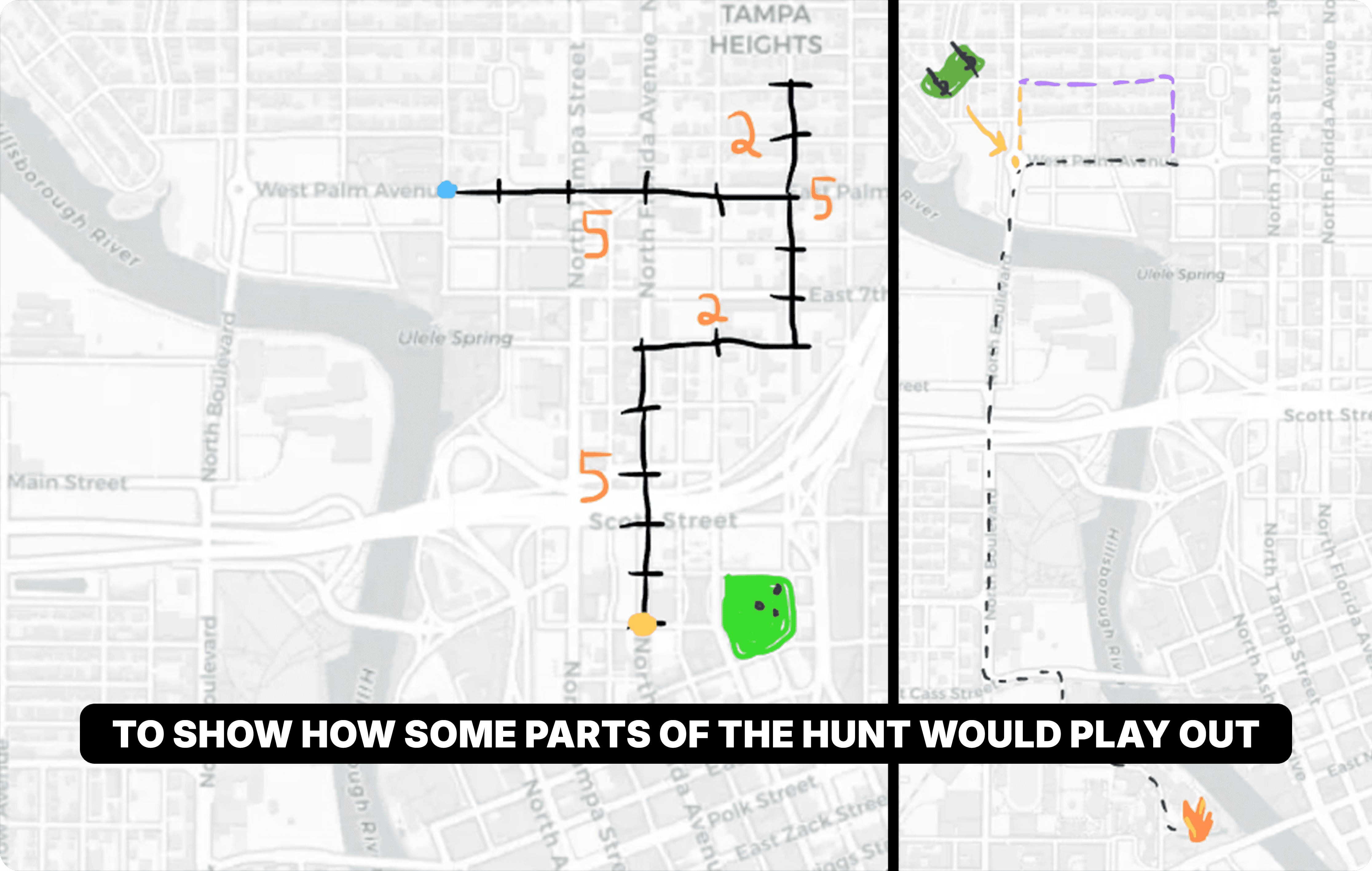 Our biggest and most complex hunt to date. Nine total hints, a cast of near-identical names—Trish Cliff, Chris Smith, and others—and a trail that pulled people across the city before looping back to a roundabout near Cotanchobee Fort Brooke Park